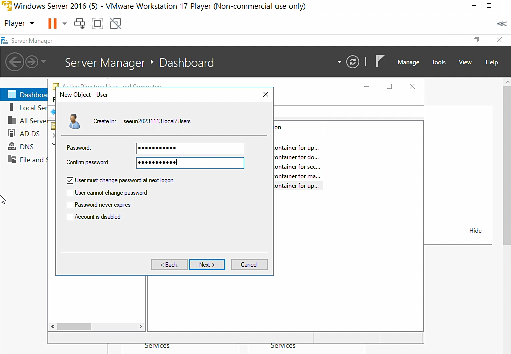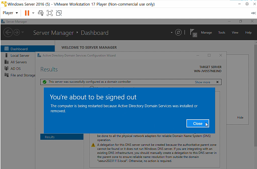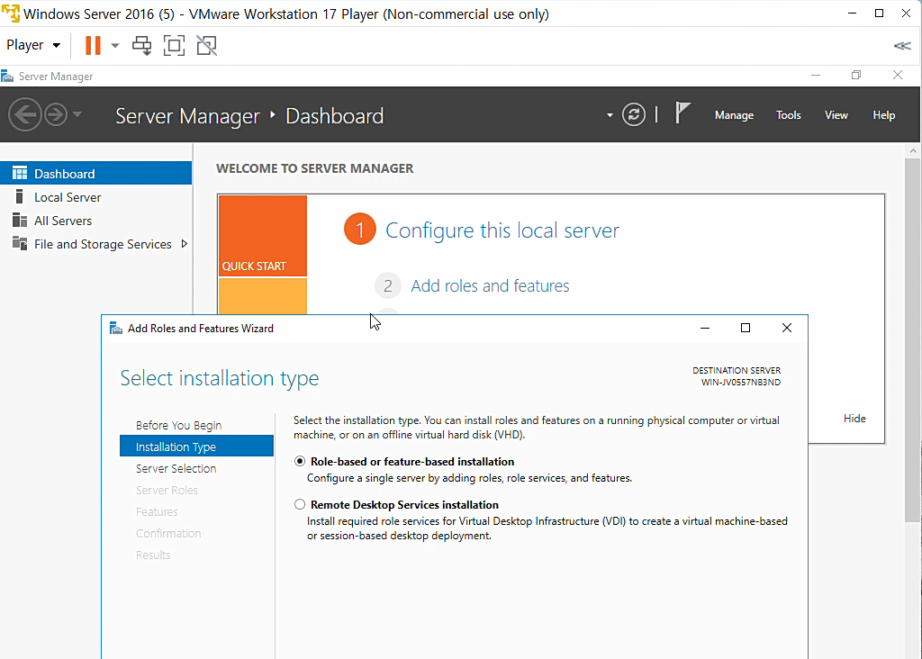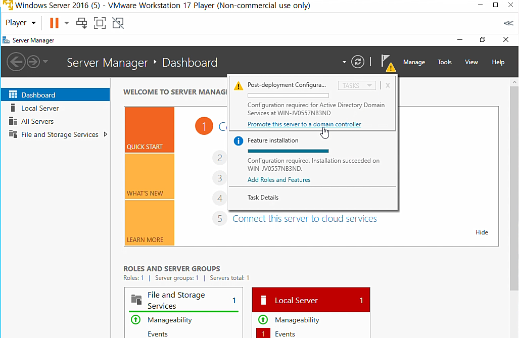 yes를 누르고 기다리면 server manager 창이 뜬다. 그러면 이제 아래 사진들을 따라서 하면 된다.