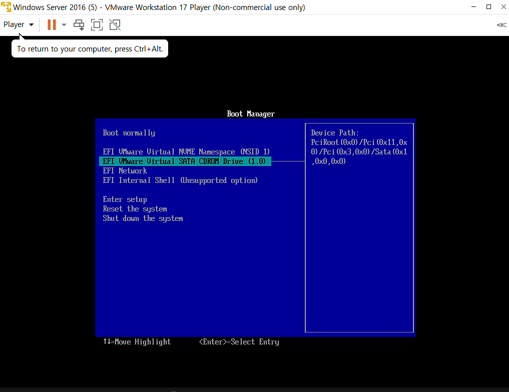 재부팅 후에 window server 2016으로 가서 cmd 창에서 ipconfig를 검색해서 ip를 알아낸다.(11-1)