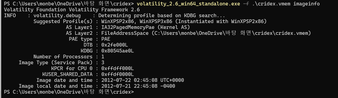 - imageinfo: 메모리 덤프의 운영체제를 식별
