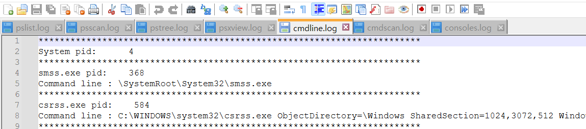 그 다음엔 cmdscan, consoles, cmdline을 위에서 했던 것처럼 만들어주고 노트패드++에서 열어주면 된다.