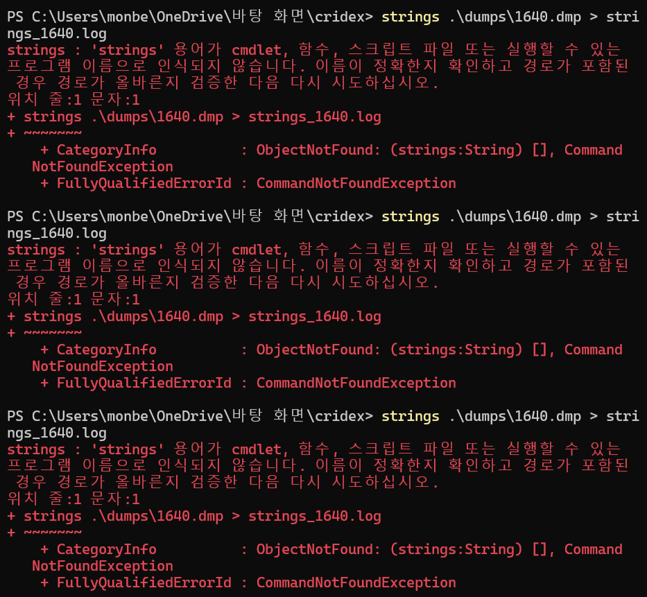 - memdump: 특정 프로세스의 메모리 영역을 덤프 -> strings 사용