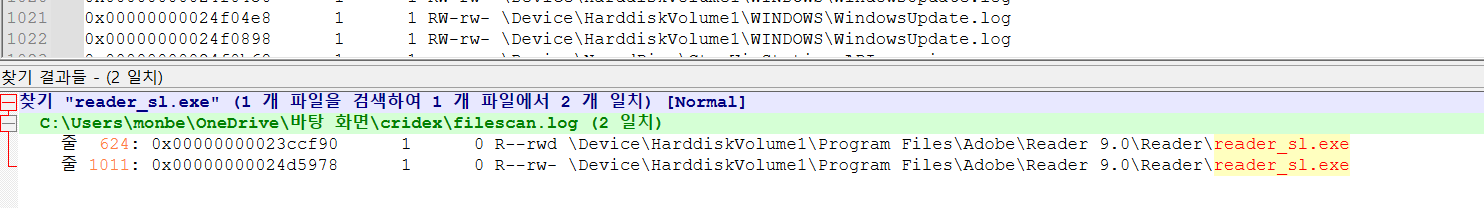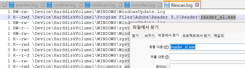 그리고 아까 의심스러웠던 reader_sl.exe 파일을 ctrl+f 해서 찾아준다.