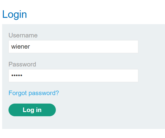 My account로 들어가서 랩 홈에서 보여준 username : wiener / password : peter 을 적어서 보내면 두번째 사진처럼 뜬다.