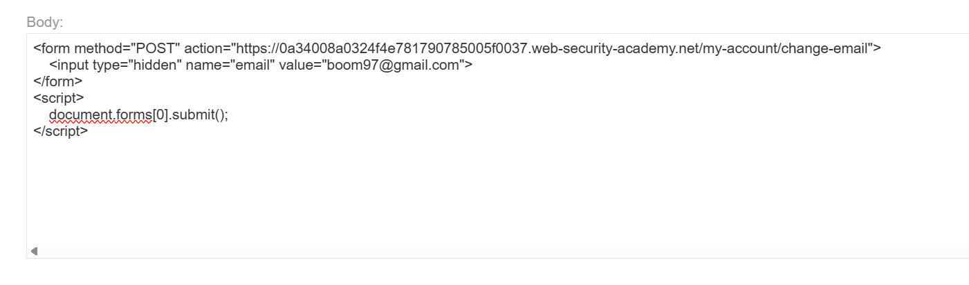 <form method="POST" action="https://YOUR-LAB-ID.web-security-academy.net/my-account/change-email">