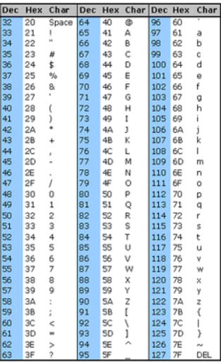 ASCII 표이다. 출처: https://www.commfront.com/pages/ascii-chart